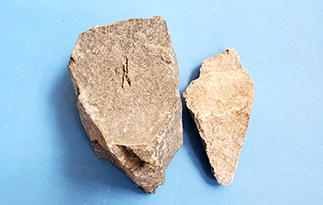 玄武岩大块物料经破碎机破碎到能进入磨粉机的入料细度(15mm-50mm)。