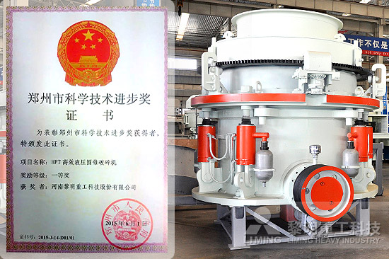 2015年8月,黎明重工HPT液压圆锥破碎机正式被郑州市科技局评定为“郑州市科技进步一等奖”。HPT系列产品通过对层压破碎、偏心旋转、全接触浮动密封、碟簧组变形补偿等原理技术的研究,解决了多缸圆锥破普遍存在的润滑系统密封性差、振动大、效率低、产量低、无过载保护、轧臼壁固定松动等难题。