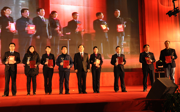 春风春语春浩荡 红桃影院,龙年龙岁龙奔腾,2012年2月1日,黎明重工科技董事长,管委会领导及1500余名员工在公司产品展厅汇聚一堂,在新年新禧的浓烈氛围中隆重举行2011年度优秀员工颁奖典礼。