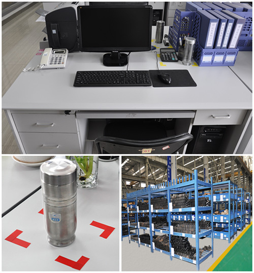走进生产车间,首先给人整齐有序、耳目一新的感觉。生产工人们衣着整齐,安全帽统一佩戴,在形成良好的个人素养的同时,也保障了安全生产。在仓库的定位管理下,车间各零部件摆放得井井有条,不仅节约了放置空间,而且便于取用,提高了工作效率。车间的展板详细记录了车间管理的新动态和更具针对性的6S知识。