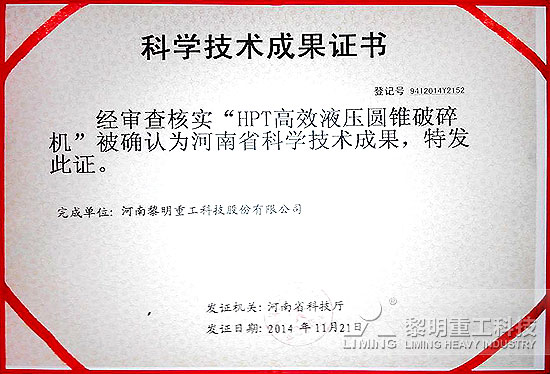 "红桃影院" 展前捷报:HPT液压圆锥破、LUM超细立磨荣获科学技术成果证书
