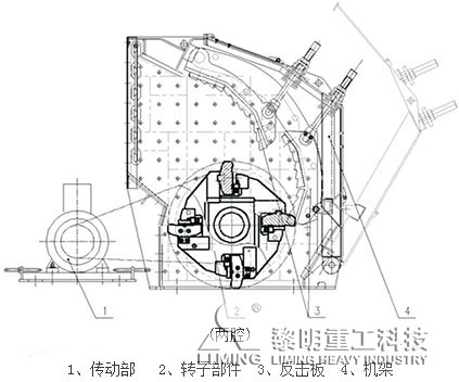 欧版反击式破碎机利用冲击能来破碎物料。当物料进入板锤作用区时,受到板锤的高速冲击而破碎,并被抛向安装在转子上方的反击装置上再次破碎,然后又从反击衬板上弹回到板锤作用区重新破碎。此过程重复进行,直到物料被破碎至所需粒度,由机器下部排出为止。调整反击架与转子架之间的间隙可达到改变物料粒度和物料形状的目的。