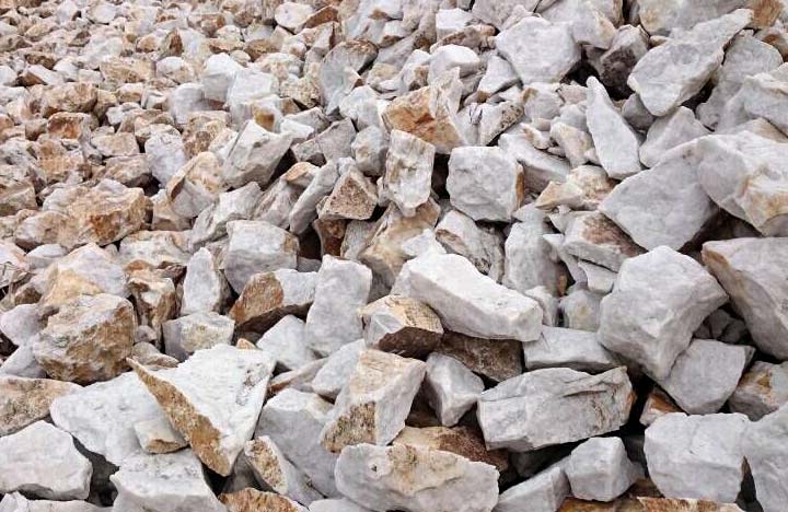 大块石英石经破碎机破碎到能进入磨粉机的入料细度(15mm-50mm)。