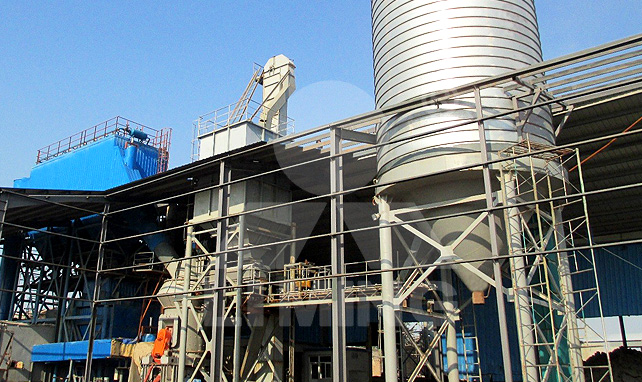 破碎后的磷石膏小块物料经提升机送至料仓,再经振动给料机将其均匀定量的送入磨机研磨室内进行研磨。