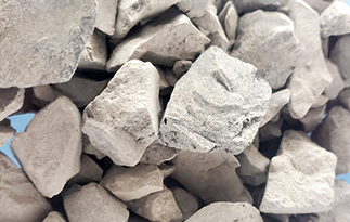 滑石大块物料经破碎机破碎到能进入磨粉机的入料细度(15mm-50mm)。