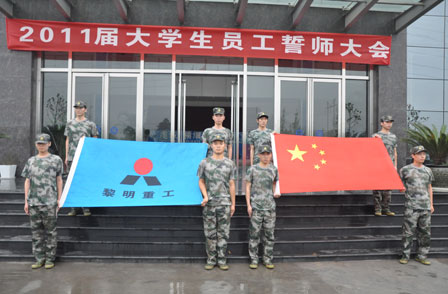 誓师大会在公司办公楼前举行,细雨使培训基地的空气格外清新。来自中国人民大学的新员工代表王海江带领大家宣誓:“我们要做虔诚、精细、严密、和谐的使者,我们要做诚心、博爱的使者,如切如磋,打造品质,如琢如磨,铸就辉煌,与世界和谐共进,让文明之光和品质之光永远闪耀。我一定刻苦训练,勇往直前;我一定圆满完成训练任务!”新员工雄壮的宣誓声响彻基地上空,表达了大家努力攀登、奋勇拼搏、不断超越自我的勇气与信心。